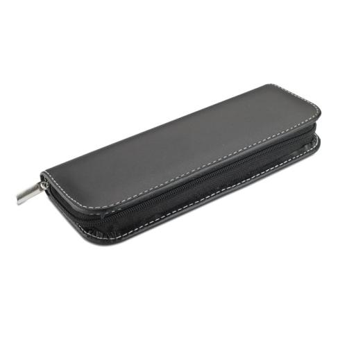 Metal pen set with ball pen and roller ball, presented in a zipped PU leather pouch in matching colour and contrasted stitching. Blue and black ink respectively.