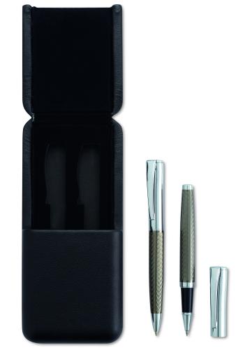 Pen set in gift box. Brass twist ball pen and roller ball. Blue / black ink.