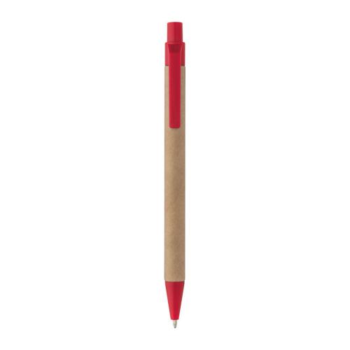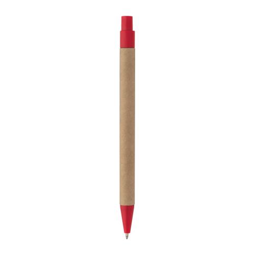 Paper pen made from recycled paper with blue-writing refill.