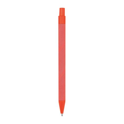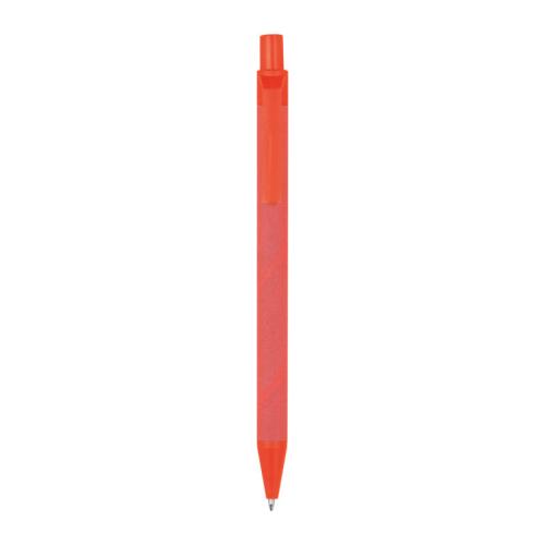 Blue-writing ballpoint pen made from recycled paper, the coloured applications are made from corn.