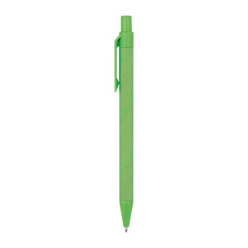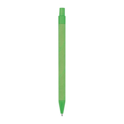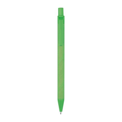 Blue-writing ballpoint pen made from recycled paper, the coloured applications are made from corn.