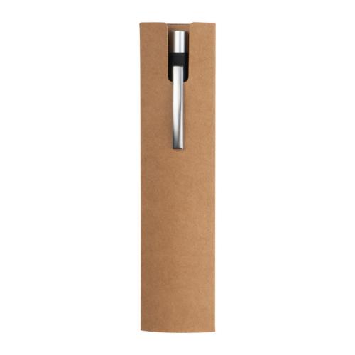 Retractable ballpoint pen made of aluminium with a bamboo grip zone and a blue refill.