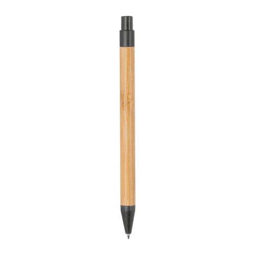 Retractable bamboo ballpen with coloured wheatstraw applications and a blue-writing refill.