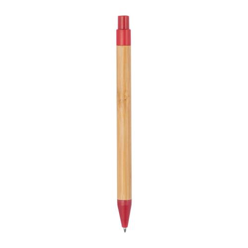 Retractable bamboo ballpen with coloured wheatstraw applications and a blue-writing refill.