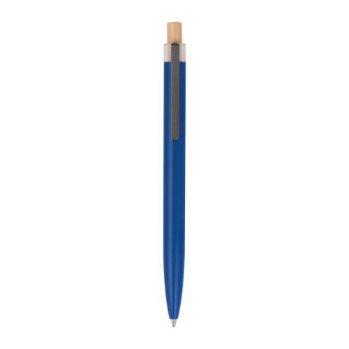 Recycled aluminium ballpen with metal clip, blue refill and bamboo pusher.