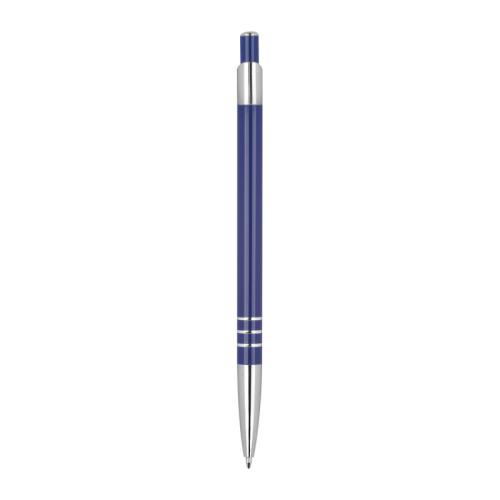 Biros in slim shape made of recycled aluminium, with blue refill and three decorative rings.