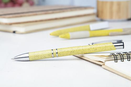 Ecological wheat straw plastic ballpoint pen with metal parts. With blue refill.