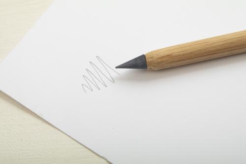Long-lasting inkless bamboo pen with metal alloy tip, which oxidizes the paper. This pen writes similarly to a pencil, and it is also erasable.