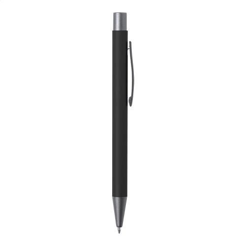 Recycled aluminium ballpoint pen with gunmetal finish parts. With blue refill.