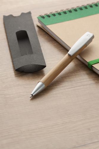 Bamboo ballpoint pen in black paper case. With blue refill.