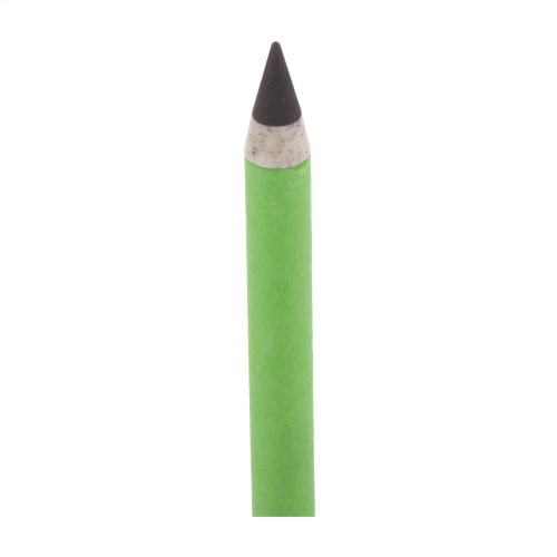 Recycled paper long lasting inkless pen with matching colour cap. With wheat straw plastic and metal alloy tip, which oxidizes the paper. This pen writes similarly to a pencil, and it is also erasable.