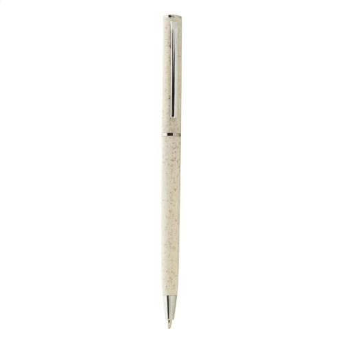 Ecological wheat straw plastic twist ballpoint pen with chrome details. With blue refill.