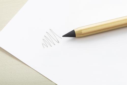 Recycled aluminium inkless pen with metal alloy tip, which oxidizes the paper. This pen writes similarly to a pencil, and it is also erasable.