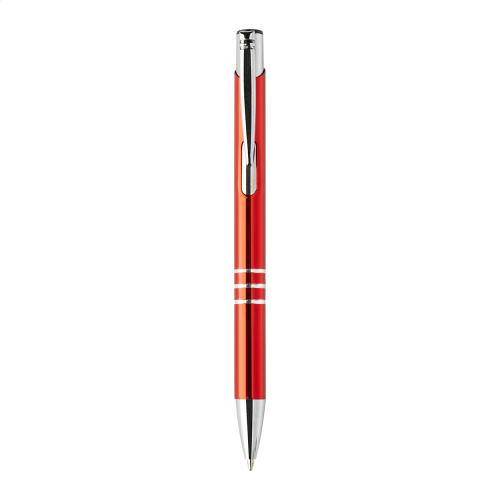 Recycled aluminium ballpoint pen with metallic finish and blue refill.
