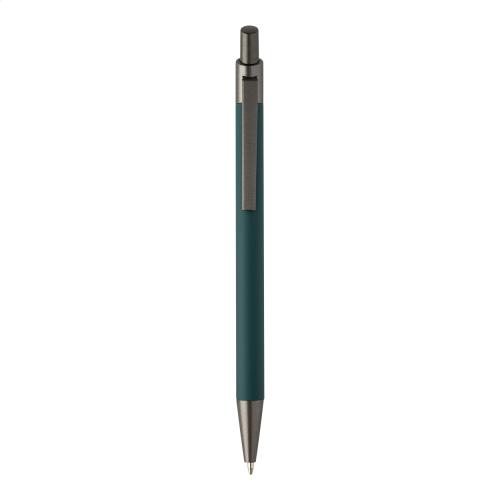 Recycled aluminium ballpoint pen with rubberized body and gunmetal finish parts. With blue refill.