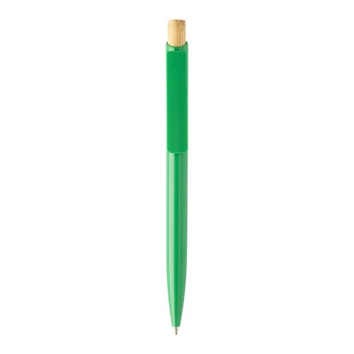 Recycled ABS plastic ballpoint pen with bamboo button. With blue refill.