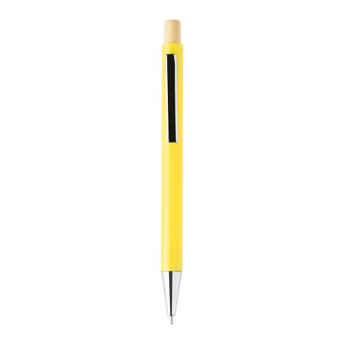 Recycled ABS plastic ballpoint pen with bamboo button and metal clip. With blue refill.