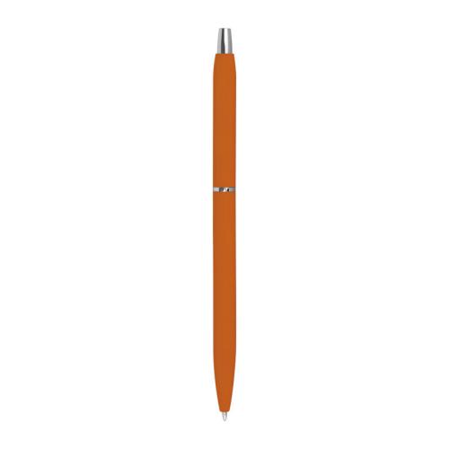 Slim, rubberized metal ball pen in different Colours, with silver applications and blue-writing refill.