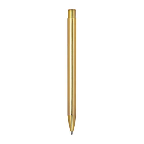 Aluminium ballpoint pen in shiny metallic colours with blue ink.