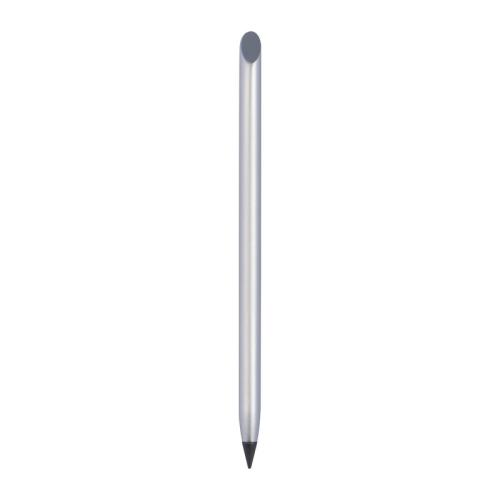 Inkless pen made of aluminium with matching case. A specially alloyed lead oxidizes. The written can be erased.