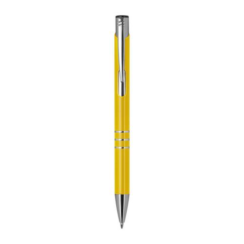 Fully lacquered metal ball pen with 3 decorative rings and blue-writing refill with large capacity.