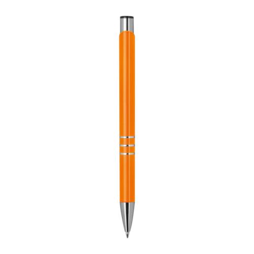 Fully lacquered metal ball pen with 3 decorative rings and blue-writing refill with large capacity.