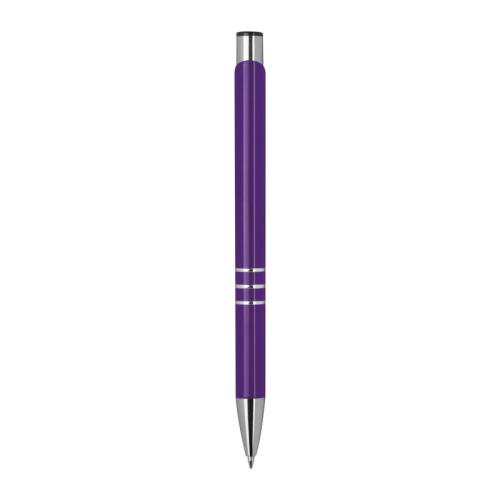 Fully lacquered metal ball pen with 3 decorative rings and blue-writing refill with large capacity.