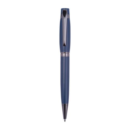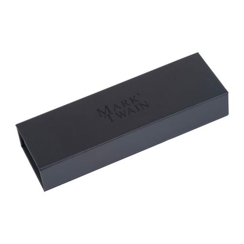 Mark Twain metal ballpoint pen with a subtle Mark Twain logo on the clip and a writing length of 800 m, blue ink. Packaged in a folding box with a glossy Mark Twain logo.