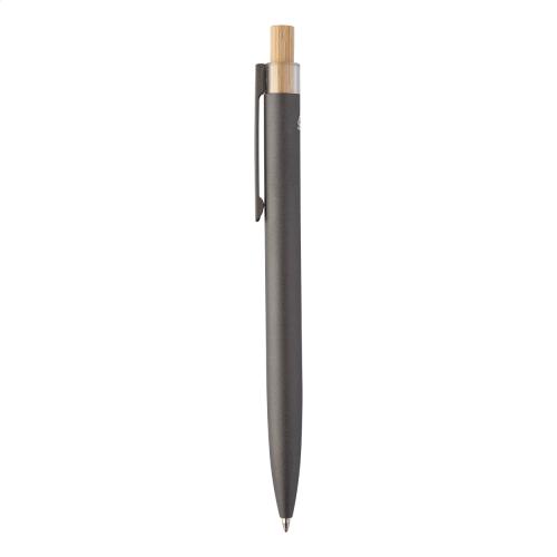 Recycled aluminium ballpoint pen with bamboo button. With blue refill.