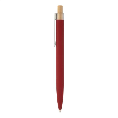Recycled aluminium ballpoint pen with rubberized finish, bamboo button and chrome clip. With special coating for mirror laser engraving. With blue refill.