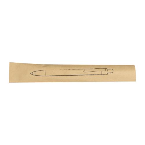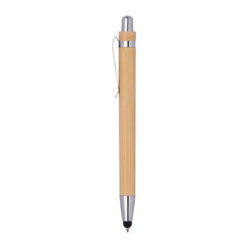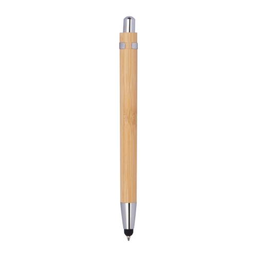 Bamboo ballpen with touch function, silver applications and blue-writing refill.
