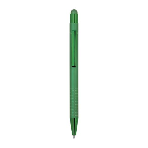 Ballpoint pen with integrated touch pen for smartphones and tablets. Features a glossy color-mirror finish, blue ink.
