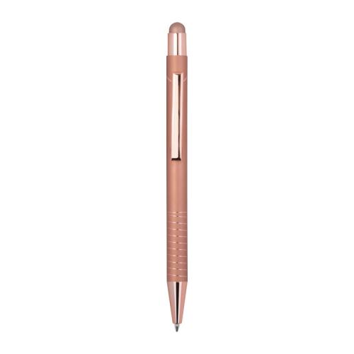 Ballpoint pen with integrated touch pen for smartphones and tablets. Features a glossy color-mirror finish, blue ink.