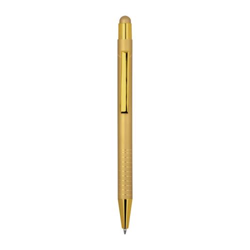 Ballpoint pen with integrated touch pen for smartphones and tablets. Features a glossy color-mirror finish, blue ink.
