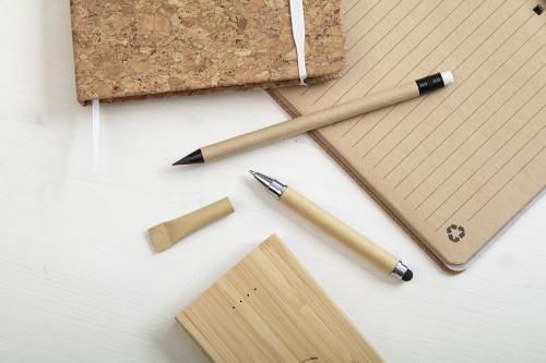 Recycled paper ballpoint and touch screen pen with matching colour cap. With blue refill.