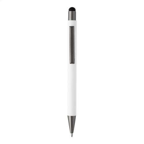 Recycled aluminium ballpoint and touch screen pen with rubberized body and gunmetal finish parts. With blue refill.