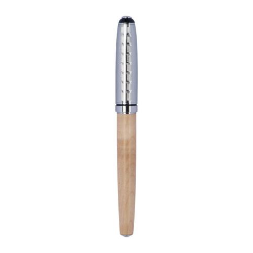 High-quality Mark Twain writing set consisting of a blue twist ballpoint pen with a large refill and a metal rollerball with a wooden body. The set is packed in a natural wooden box.