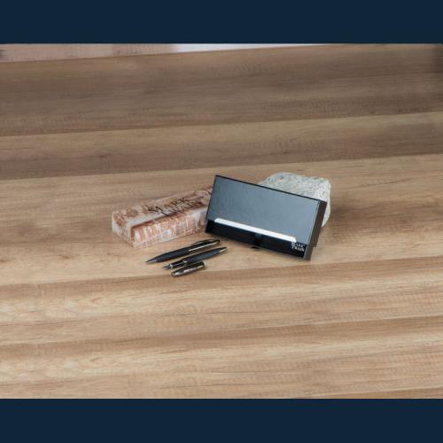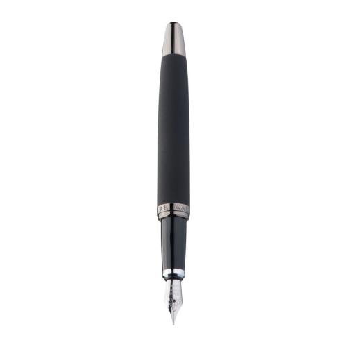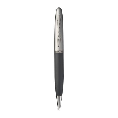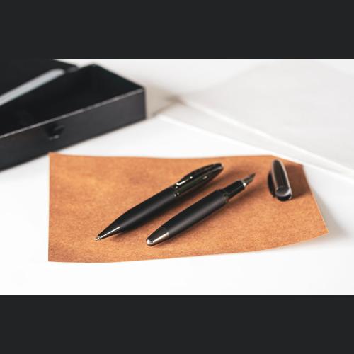 Mark Twain writing set in a black case, consisting of a blue-writing ballpen with twist mechanism and a fountain pen with rubberized shaft.