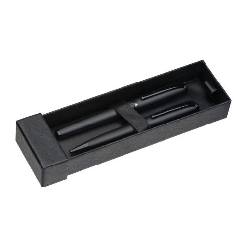Mark Twain writing set consisting of a twist pen and a rollerball made of metal with a black, matt barrel and shiny black applications, packed in a gift box.