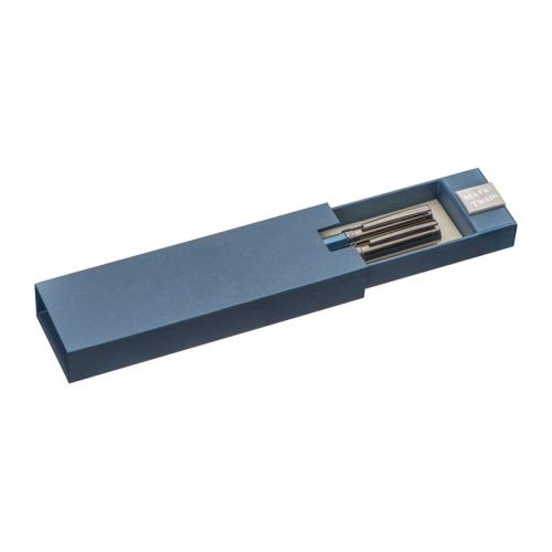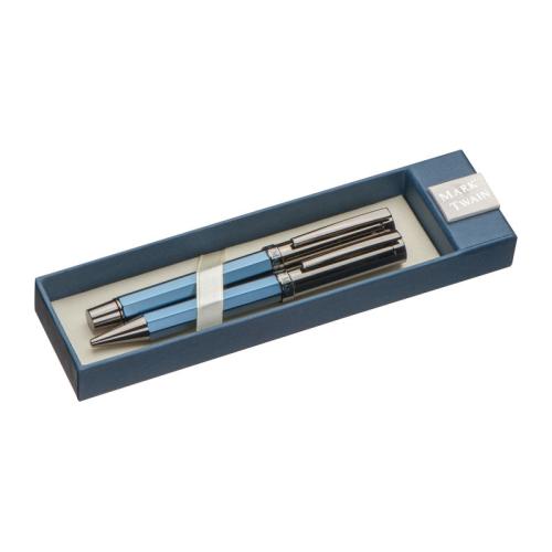 Mark Twain writing set consisting of a rollerball and pen made of metal with a dark blue finish (writing colour blue).