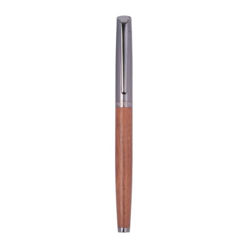 Mark Twain writing set made of stainless steel and wood. Ballpoint pen writes in blue, 1200 m writing length; rollerball writes in blue, 400 m writing length.