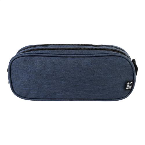 Zipped RPET polyester pen case with 2 compartments. 300D RPET polyester, with distinctive RPET label.