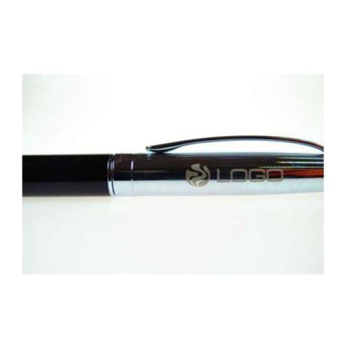 Branded metal rollerball and ballpoint pen Pierre Cardin. The bottom part is made in black colour, upper silver part is decorated by fine engraving on the surface.