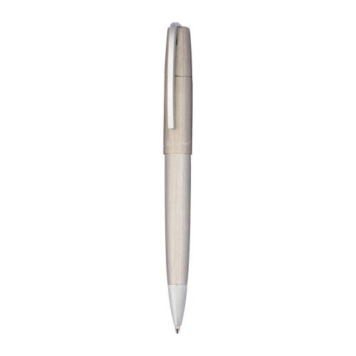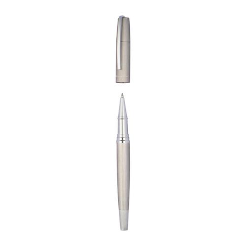 Ferraghini writing set in elegant matt brushed metal. The set consists of a blue twist action ball pen and a rollerball.