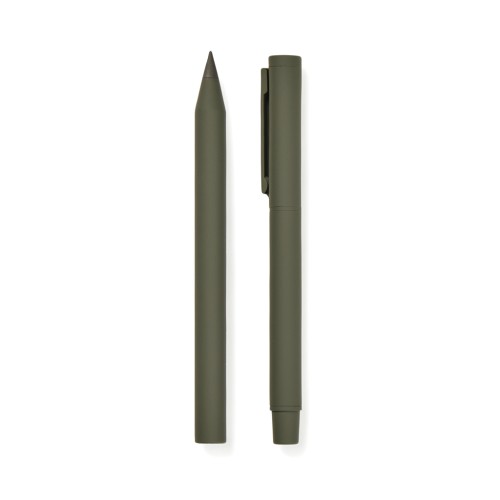 This modern and sleek set includes two pens: an eternal pen and a classic ballpoint pen with a cap and clip. Designed for both style and functionality, these pens are crafted from RCS certified recycled stainless steel, featuring a rubber surface coating for a comfortable grip and a matt finish. Both pens have a balanced weight that ensures stability and effortless writing. The eternal pen offers limitless writing. The ballpoint pen features a fine 1.00 mm tip and provides smooth, consistent writing with documental blue ink, lasting up to 1200 metres. Certified by RCS (Recycled Claim Standard), RCS certification guarantees that the entire supply chain of recycled materials is certified. The total recycled content is based on the overall product weight. This product contains 52% RCS certified recycled aluminum and 10% RCS certified stainless steel.
