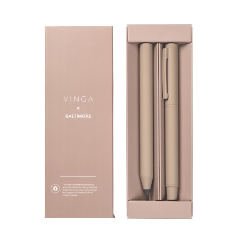 This modern and sleek set includes two pens: an eternal pen and a classic ballpoint pen with a cap and clip. Designed for both style and functionality, these pens are crafted from RCS certified recycled stainless steel, featuring a rubber surface coating for a comfortable grip and a matt finish. Both pens have a balanced weight that ensures stability and effortless writing. The eternal pen offers limitless writing. The ballpoint pen features a fine 1.00 mm tip and provides smooth, consistent writing with documental blue ink, lasting up to 1200 metres. Certified by RCS (Recycled Claim Standard), RCS certification guarantees that the entire supply chain of recycled materials is certified. The total recycled content is based on the overall product weight. This product contains 52% RCS certified recycled aluminum and 10% RCS certified stainless steel.