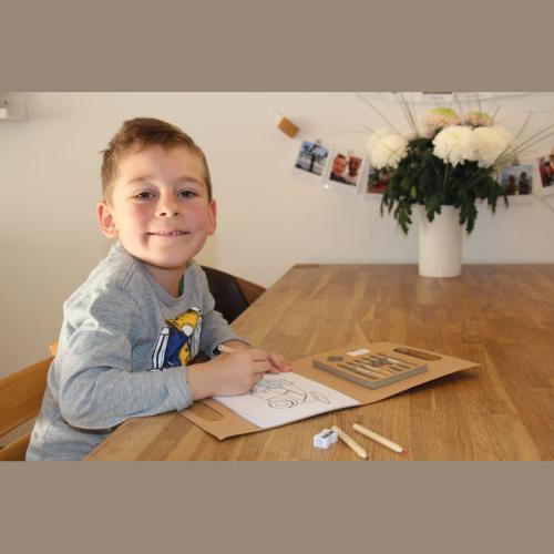 Colouring book, comes with 6 colouring pencils, sharpener and eraser. The colouring block comes with 30 sheets, perfect for the young artists.