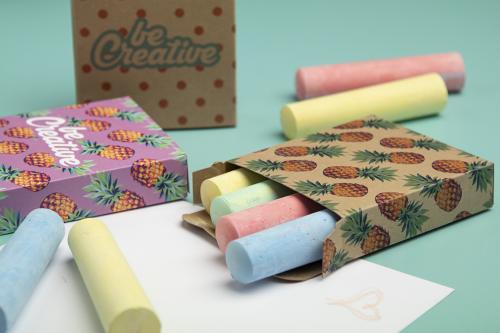 4 pc coloured chalk set in full colour printed paper box. Price includes digital printing. MOQ: 100 pcs.