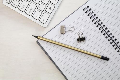 Black wood lead pencil in metallic finish, with black eraser. Sharpened, HB grade.