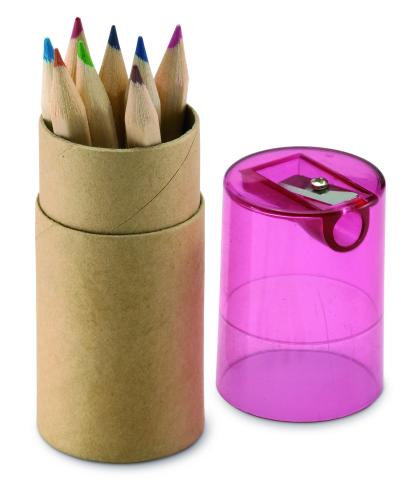 12 piece colouring pencils in recycled paper. Pencil sharpener transparent lid.